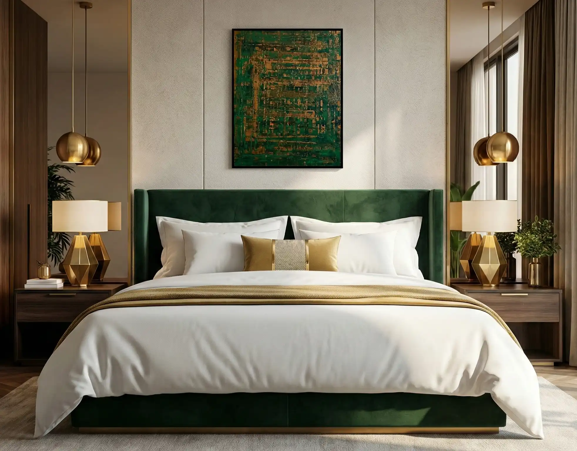 Emerald & Gilded Mosaic | Textured Abstract Art
