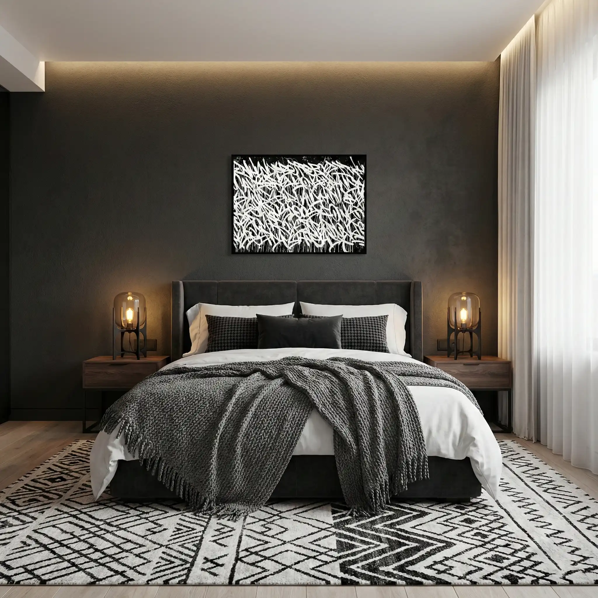 Monochrome Cascade | Abstract Acrylic Painting